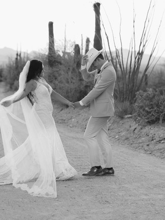 Some of our favorite moments were the elopement ceremony nestled between two towering saguaro cacti, the stunning veil shots, and the relaxed, natural photos that felt completely effortless.